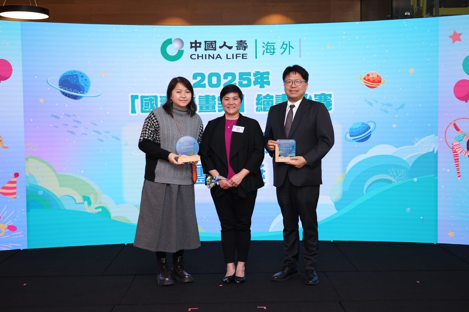 中国人寿(海外)副总裁兼香港分公司总经理忽群女士(中间)颁发金奖