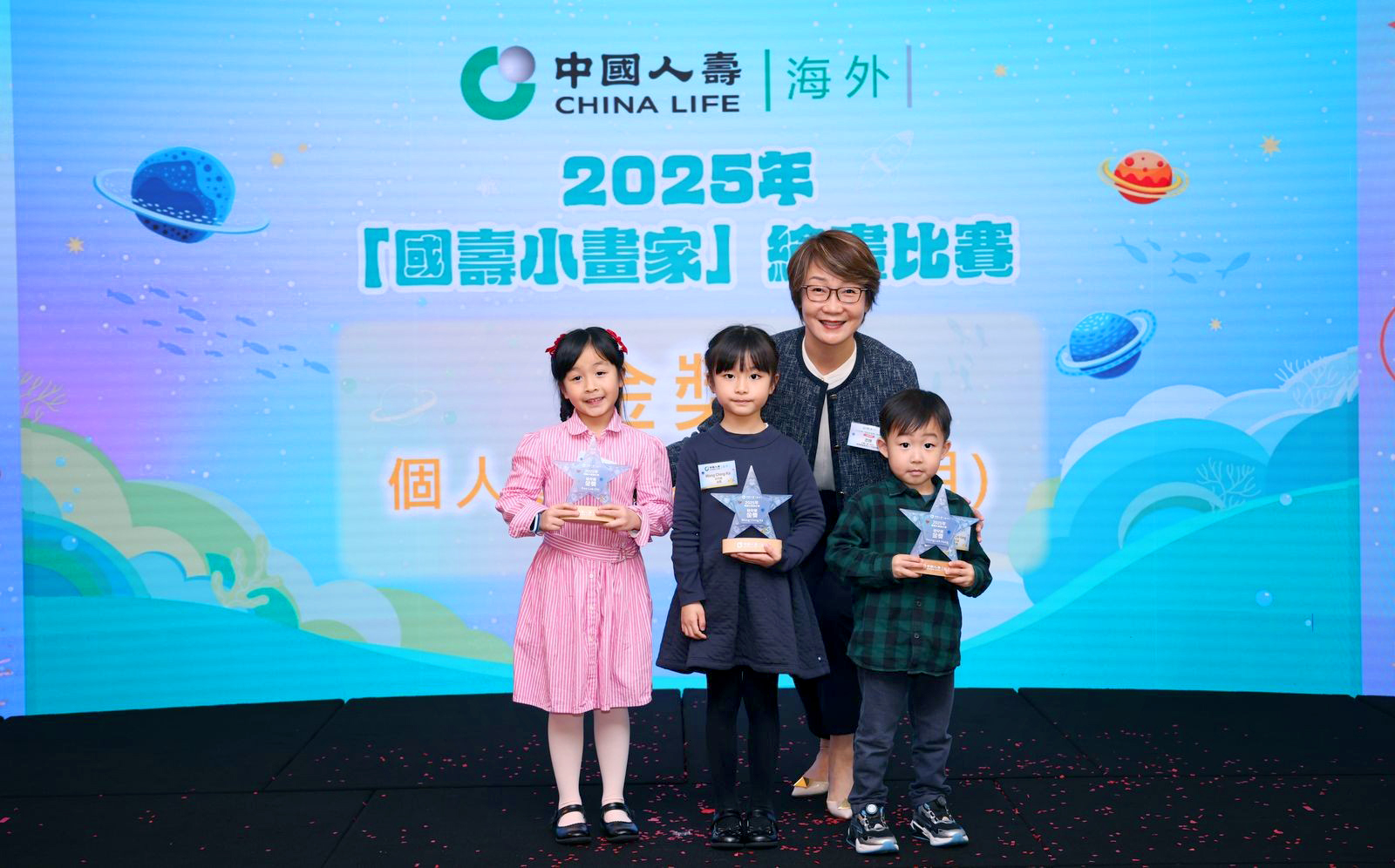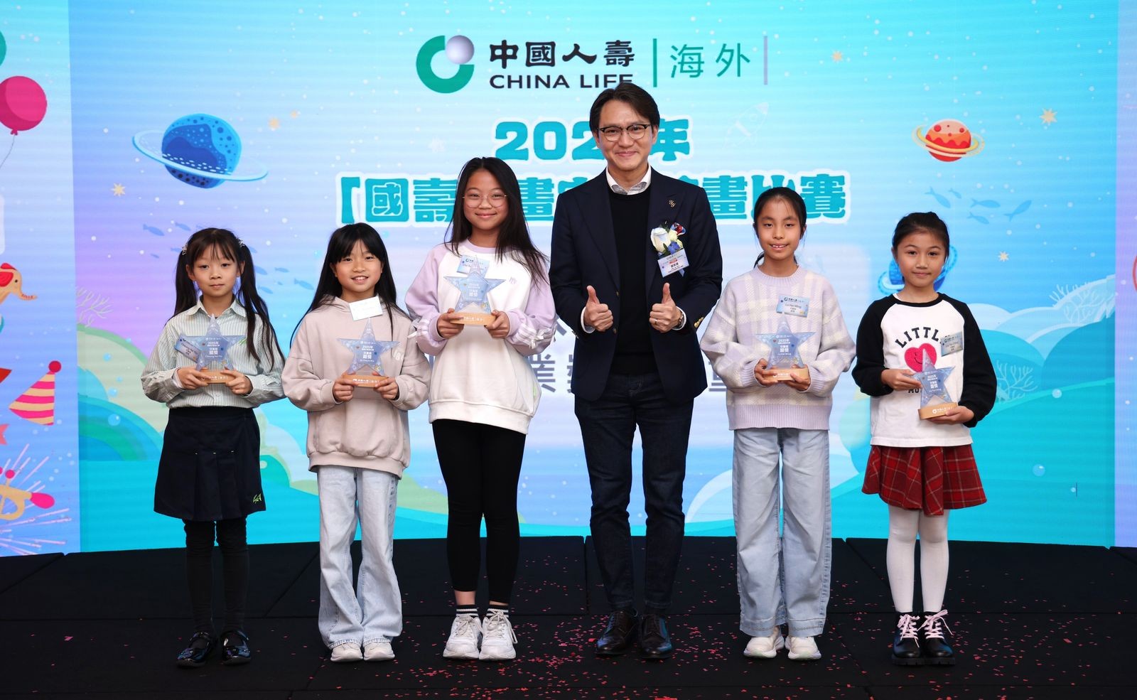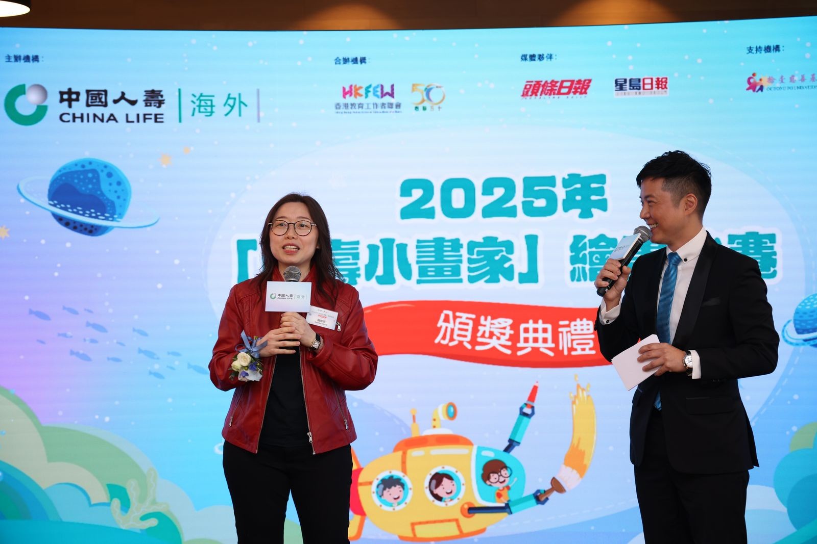 由中国人寿保险(海外)股份有限公司(「中国人寿(海外)」)主办、香港教育工作者联会(「教联会」)合办、「头条日报」及「星岛日报」为媒体夥伴、拾壹慈善基金会支持的2025年「国寿小画家」绘画比赛颁奖典礼已於1月31日在红磡中国人寿中心圆满举行。