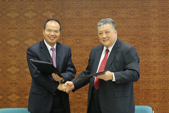 (澳门—2016年9月21日)中国人寿(海外)澳门分公司与滙业银行於澳门隆重举行业务合作签约仪式。中国人寿保险(海外)股份有限公司澳门分公司总经理周士军先生与滙业银行主席区宗杰先生共同签署了合作协议。