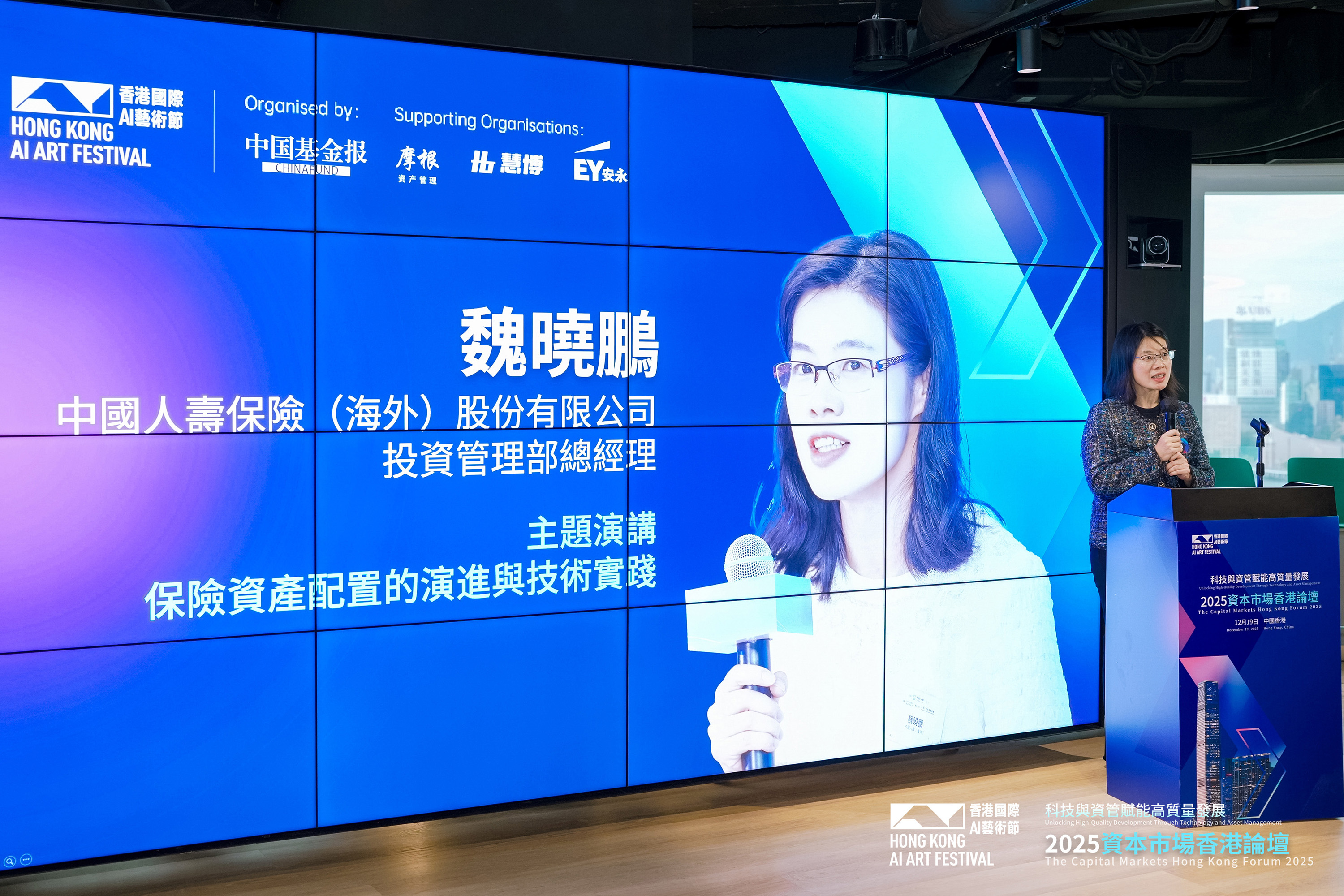 此次AI藝術展期間,還舉辦「科技與資管賦能高質量發展·2025資本市場香港論壇」。中國人壽(海外)投資管理部總經理魏曉鵬女士代表公司出席,並發表了題為《保險資產配置的演進與技術實踐》的主題演講,剖析了數字化驅動保險資金配置創新,科技賦能風控與收益提升。