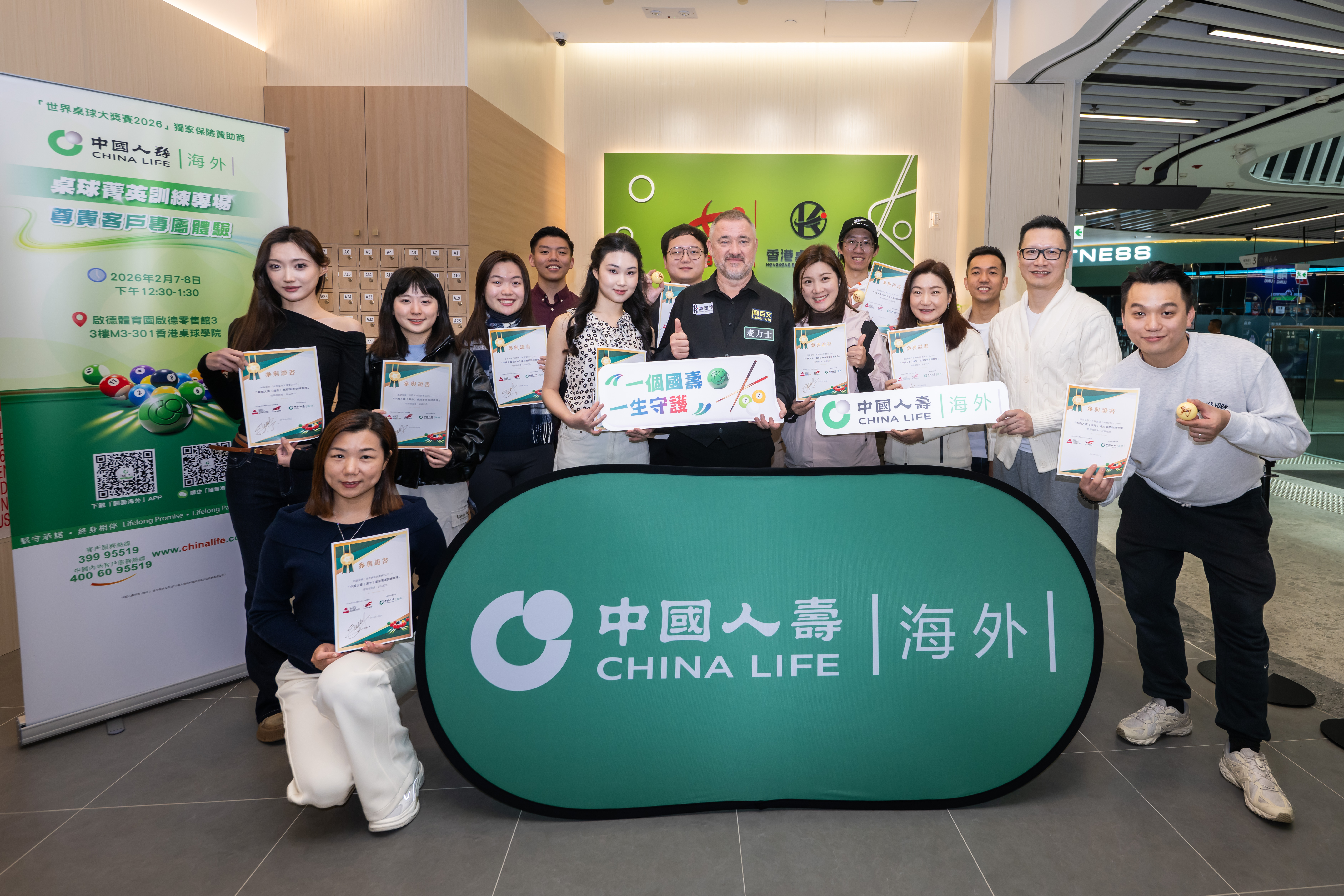 中國人壽(海外)作為「世界桌球大獎賽2026」的獨家保險贊助商,聯乘主辦機構F-Sports Promotion Limited,於2月7日及8日在香港桌球學院精心策劃了兩場客戶專屬體驗 - 「桌球菁英訓練專場」,特邀被譽為「桌球皇帝」的傳奇球星史蒂芬‧亨特利(Stephen Gordon Hendry)親臨指導,帶領參加者學習專業技巧及分享實戰心得。