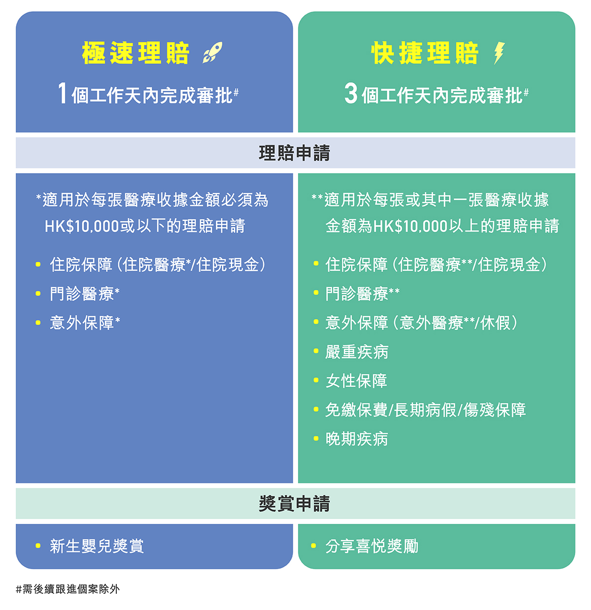 - 視乎保單條款及賠償額而定。